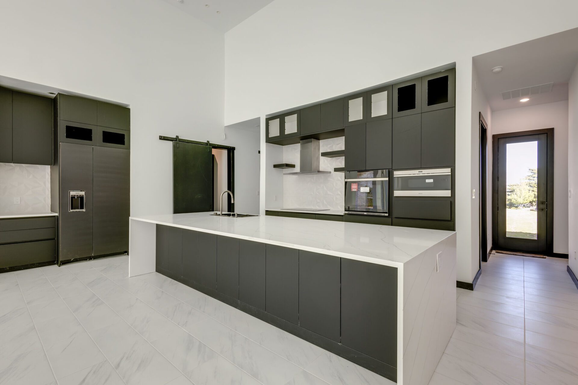 This sprawling home features a striking contemporary design with an open floor plan, clean lines, and about 4700 total square feet. The high ceilings, white marble flooring, and an abundance of large windows celebrate natural light. With a balanced composition, this home was built to maximize amenities while maintaining a minimalist aesthetic.